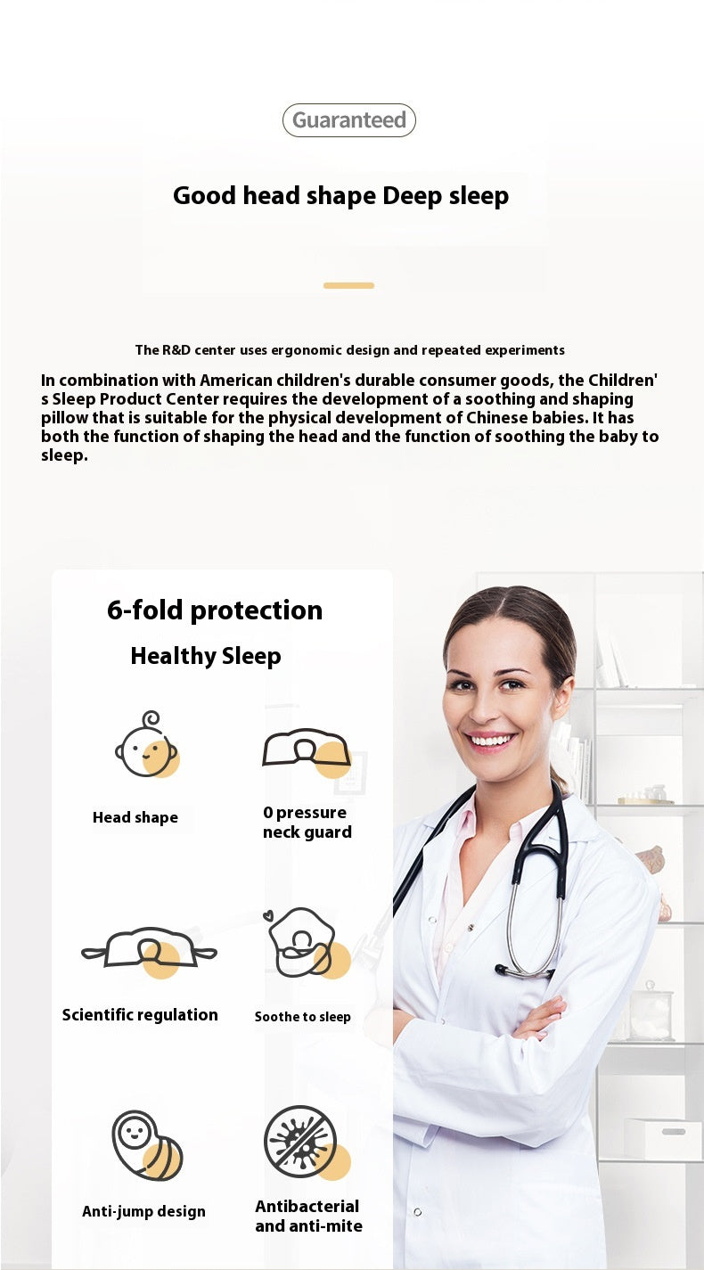 As a parent, your baby's safety and healthy development are your top priority. Our Angelic Sleep Head Shaping Pillow is designed to give you complete peace of mind, providing a sleep environment that is not only cozy but also scientifically engineered for your baby’s well-being. Made with 0 fluorescent agents, 0 formaldehyde, and no odor, this pillow ensures your baby can sleep directly on the skin with absolute safety.